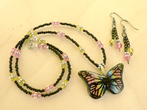 Комплект "Самшитовый лес" (бусы 700, серьги 230).
