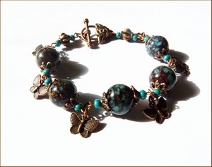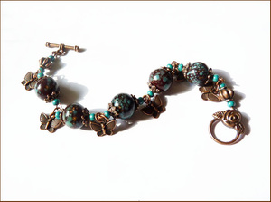 Лэмпворк, медная фурнитура. На запястье 17-17,5 см (возможна корректировка длины).