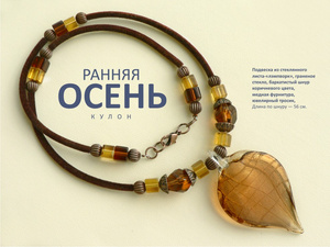 Пара кулонов с фольгированным лэмпворком в теплых осеннних тонах на бархатистых шнурах.