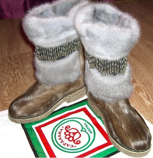 у меня мама сейчас в иркутске живет,она мне все уши прожужала про сапоги из оленьего меха.Такие,мехом наружу.Говорит,там все в таких ходят,ооочень теплые(вроде внутри овчина,а сверху мех олений).Камусы вроде называются по-правильному.Стоят недешево(хорошие).Мне,чсетно говоря,не очень нравятся такие.как йети