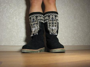 Настоящая, говорите? Это не совсем ведь унты - это сапожки из овчины с вышивкой на войлочной подошве.