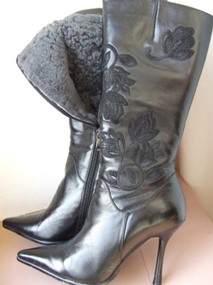 размер 36, каблук 10 см, на голенищах красивая вышивка. Очень теплые и удобные.
