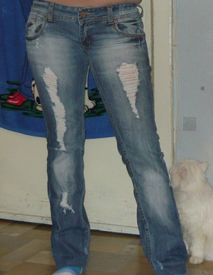 продам стильные джинсики с потертостями.Размер М.Состояние отличное.Цена 750 рублей.Торг (ВИД СЗАДИ)