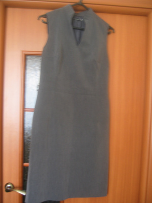 Цвет серый (меланж), сзади шлица, есть тонкий пояс в цвет платья