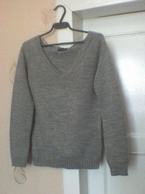Цвет серый (меланж), сзади шлица, есть тонкий пояс в цвет платья