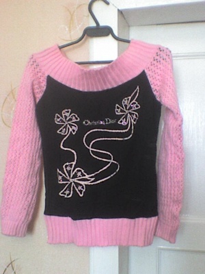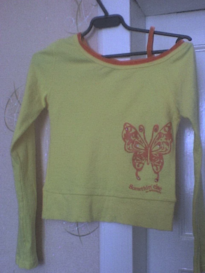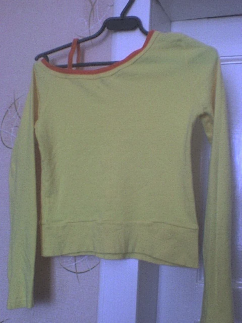 ярко желтая кофтейка с оранжевой бабочкой(в бабочке стразики).Плечо одно будет наискосочек.(фото не передаст насыщенность цвета этой кофты) размер S(42-44)200 рублей
