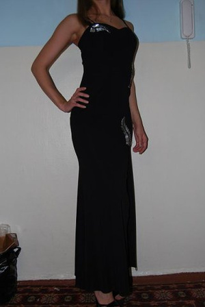 Коктельное платье,очень красиво смотрится спина-на шнуровке,благодаря этому утягивается декольте и грудь выгодно приподается...Стоимость 1100.Размер 44...возможно 42