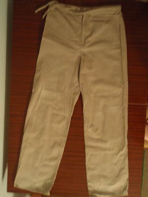 Точные размеры: диаметр в поясе 83 см, длина штанины по внешнему краю - 103 см, длина штанины по внутреннему краю - 85 см. Внизу штанины на замочках. Длина замка 25 см. 700 руб.