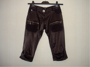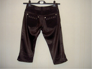 Бриджи атласные, цвет шоколад, на карманах вставки из микровельвета, немного стрейч, р.42-44, цена 350. Эффектно смотрятся на фигуре.