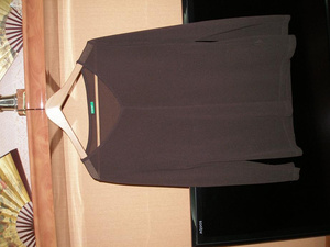 кофта Бенеттон,шифон по русски наверное крупный.р-р 44. 400 р. впереди посередине шов,а внизу разрез15 см.