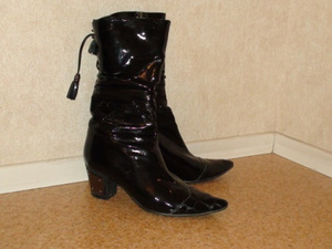 Продаются лакированные демисезонные сапоги,на каблуке. Сзади на голяшке шнуровочка.Размер 40,на узкую ножку.250 рублей.