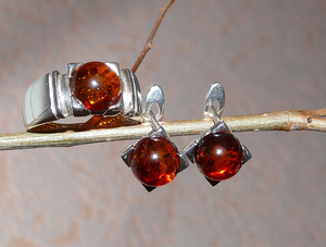 Комплект серьги + кольцо, серебро 925 и янтарь. Кольцо р-р 17,5.