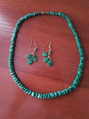 2. Яшма? - Бусы (44см) и серьги из зеленого минерала (с названием минерала не уверена).