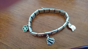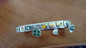 Оригинальный браслет, 18 звеньев, 4 из них с подвесками, остальные эмаль и золото. Покупателю всего браслета в подарок одно звено из классической базы. Возможно продажа поштучно по 800 р за звено с золотом и эмалью и 900 за звенья с подвесками. В приоритете продажа целиком.