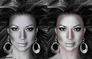 Слева - зоны нанесения средства соответствующего оттенка Вашей кожи; Справа - зоны нанесения средства немного темнее оттенка Вашей кожи