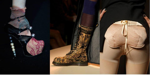 Про обувь- ремешки, ремешки!!!!! каблуки с дырками, разноцветные туфли-светофор!! шпильки 12 см !! летние сапожки.... обувь из ткани- хлопок, атлас..... ботфорты( всегда) !! шнуровка по всей ноге.