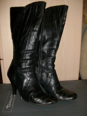 Сапоги, р.39, чёрные, весна-осень, скорее для сухой погоды. Tamaris. Забирайте за 500р. Место занимают.