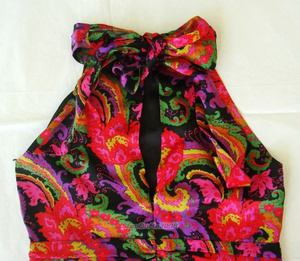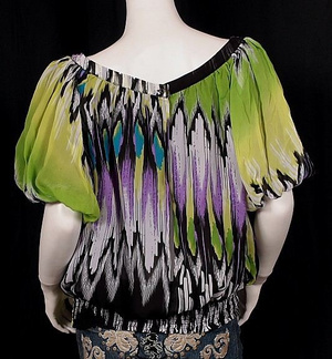 Натуральный шелк, подклад из шифона. Модные цвета. На спине от резинки до пуговки на шее разрез, вырез впереди вышит стразами.