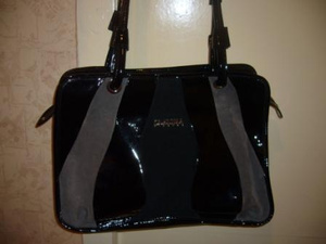 Продам. Спереди вставки из черной и серой замши(натуральный лак и замша) CLAUDIA Куплена в Домани.Очень вместительная,одно отделение,но есть внутри кармашек для документов на молнии и кармашек для телефона.Б/у чуть-чуть прошлой весной и осенью.Цена 2300руб.