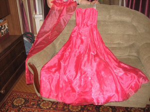 Вечернее платье "брусничный цвет", шелк, корсет, юбка на кринолине, палантин. Англия. Новое! (пока ждали свадьбу, невеста поправилась