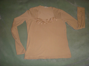 Кофточка Marks&Spencer, 95 % вискоза, 5 - эластан. цвет карамель, размер 48-50. По горловине оч. красивая вышивка в тон. Жаль, не мой размер.