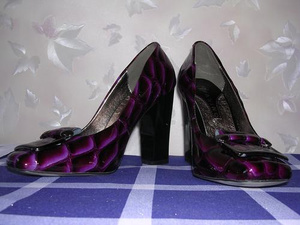 Туфли новые 35 р-р , лакированная кожа под питона (прессованная, скорее всего, хотя утверждалось, что натуральная), шикарного сливового цвета, колодка удобная, каблук 9см 700 руб.