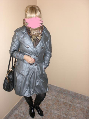 Стильный плащ на раннюю весну, на синтепоне, серебристого цвета, размер 44-46.