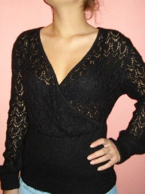 Тонкая трикотажная кофточка из вязанного акрила. Фирма Страдивариус. Очень мягкий, цвета натурального льна. Очень женственная, свободного кроя. Размер 46-48, можно и на 50.