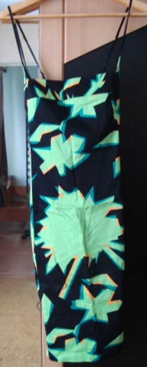 продам летнее платье, на лямках, черная плотная ткань, с яркими зелеными звездами, силуэтное, 46 размер, хочу 500р, торг