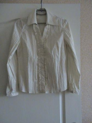 классическая блуза Cheer (Германия). р. 46-48.Хлопок-стрейч. Эффект жатки, с ненавязчивым вышитым орнаментом. Цвет светло-кремовый. Потайные пуговки