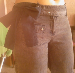 брюки жен. 46 р-р серо-черные в робкую клеточку. Sela. внизу манжета-ширина регулируется, поясок завязывается бантом на боку. на рост 170-172 500 руб