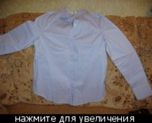 1. Рубашка женская, размер 50 (ширина в плечах 37 см., ширина по нижнему краю 54, длина 65), цвет голубой, состав ткани 68% хлопок, 28% полиамид 4% эластан. Цена 700 руб.