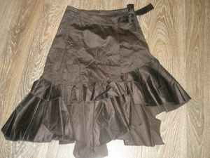 Вельветовая шоколадная юбочка, очень красивая (запАх, стрейч, ассиметрия, сложный крой и все дела ), дорогая. Отдам за 400р. Размер 42-44