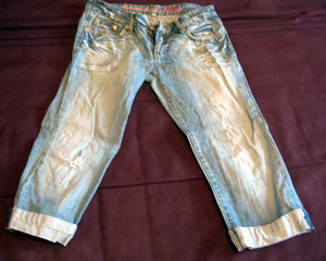 5 Бриджики джинсовые Terranova.Б\у,в хорошем состоянии.Размер стоит М,на ОБ примерно 96 и можно чуток побольше даже,наверное.На низкой посадке.Модненькие - с дырочками и потертостями
