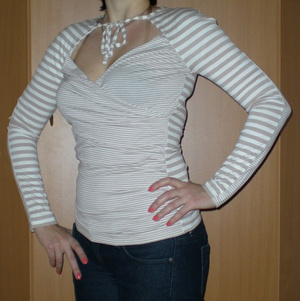 Продаю стильную кофточку с роскошным декольте! Б/у 2 раза - мне маловата. Подойдет на размер 40-42 (S) на грудь не меньше 2 разм. Заказывала в немецком каталоге за 1800, хочу 800р. (с разумным торгом). Тел. 8-913-701-49-15