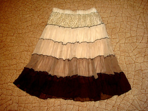 3. юбочка летняя. очень красивая. внизу подклад, сверху легкая ткань. р-р 42-44. верх - резинка, тянется очень хорошо))) и на 46 можно) цена 100.