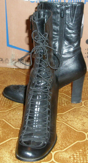 Предлагаю сапожки на весну черные, каблучок 8см, со шнуровкой впереди,б/у несколько раз,тк. каблук высоковат для меня, 500р.