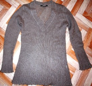 Свитерок зеленого цвета (Silk & cashmere) , размер М, но он на 48 свободно сядет, а то и на 50 плотно. Обошелся в 1400 руб.Пристроен.