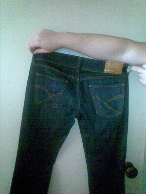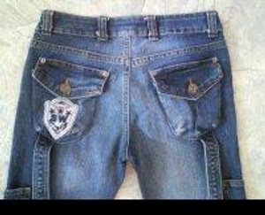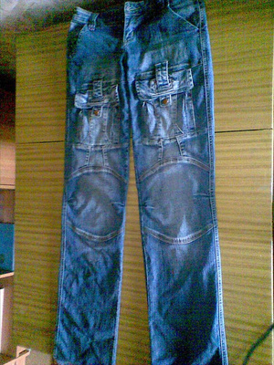 Очень качественные джинсы (настоящая плотная ткань), посадка на бедрах, хорошая ростовка. р.44-46, лучше ближе к 46, хотя надо мерить. Цвет грязно-темно-сине-зеленоватый смотрятся эффектно. 500р.