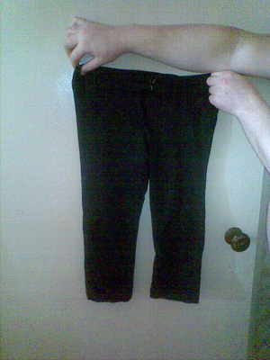 Бриджи, эластичная ткань, облегающие по фигуре, сидят на бедрах, длина ниже колена. Интересная модель. 300р.