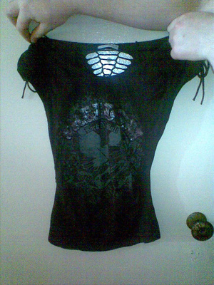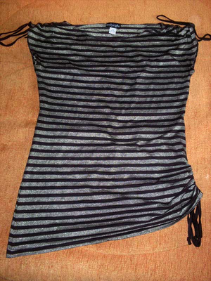 Топ от Юджина Михалсена , верх из натурального шелка, низ из полиэстера, внизу по бокам разрезы, на уровне живота спереди небольшая драпировка. Р-р 50.мне уже велик( вещь новая. Цена всего 250 р.