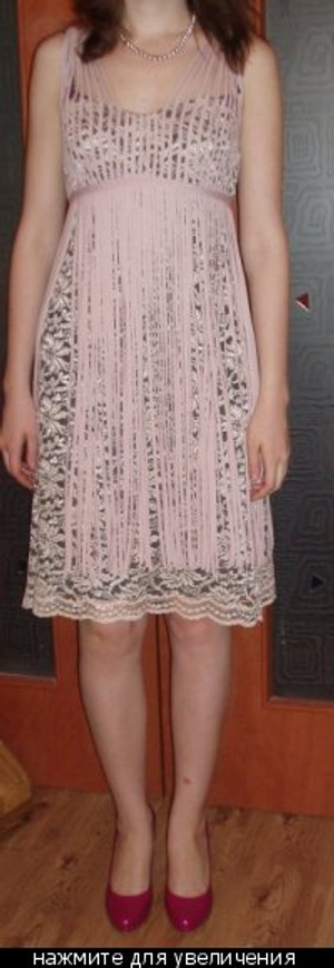 Отрываю от сердца нереально красивое платье известнейшей фирмы BCBG Maxazria. Привезено из Америки, оригинал. Кружево, натуральный шелк (подклад в том числе из нат. шелка), цвет чайной розы. "Веревочки" очень эффектно развеваются при ходьбе. В жизни в миллион раз лучше, чем на фото. Продаю, потому что все-таки велико и сидит не так, как нужно. Новое, не надевано, только несколько раз примерялось в тщетных надеждах:)