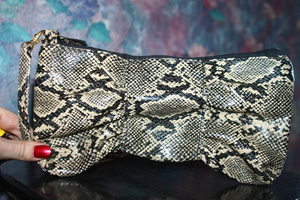 Имеется коротенькая ручка, пристегнутая на карабинах (с ручкой сумочка, без ручки -милый клатч).