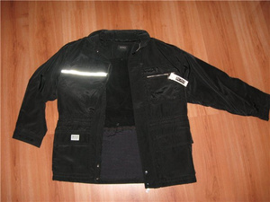 На этикетке стоит штрих-код 88, наверное, Корея. Везде эмблемы фирмы, на кнопочках, замочках, липучках, и т.д. В воротнике прячется капюшончик тоненький. Рукав снизу регулируется липучкой. По поясу внутри кулиска.Подклад в верхней части курточки флисовый, низ стеганый. Сзади по линии плеч вставка из кожзама (см. фото).