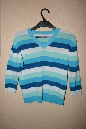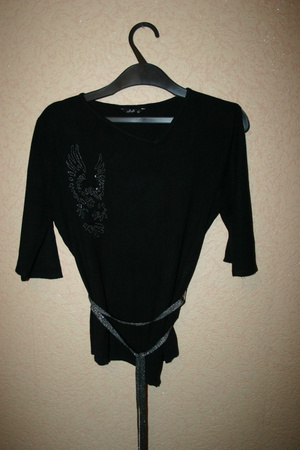 Кофточка,очень стильная,турецкой фирмы LOFT,ассиметричная горловина,на рукавах разрезы,вышивка паетки,пояс люрекс,р 44-46,цена 150р.