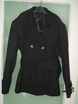 Продам новый с этикеткой пиджак на межсезонье фирмы Naf-Naf. Двубортный, черного цвета, ремень на талии из такой же ткани, на подкладе, есть возможность застегнуть под горло. р-р 44-46. Цена 3800.