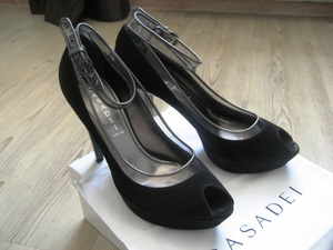 Продам Туфельки культовой испанской фирмы Casadei . Металлизированный каблук, замша и винил. Мечта для модниц! Размер 38,5. Цена 5500 руб.