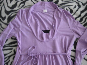 Цвет очень приятный-светло сиреневый. Подойдет беременным, т.к. крой свободный есть место для пузика