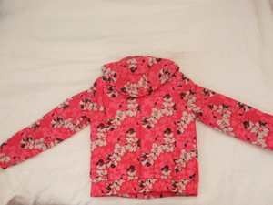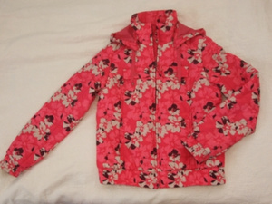 . Куртка 46 р-ра (у них S), но может подойти и на 44-46, на синтепоне, ярко-розовая в цветочек(не коралловая!) Замочек есть снизу и сверху, капюшон отстегивается, воротничок-стоечка, спереди кармашки вверху 2 и внизу 2, есть внутренний, по низу резинка. Курточка была одета раза 3-4 не больше, поэтому состояние идеальное