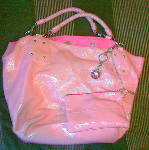 Продам сумку натуральная кожа-лак, РОЗОВАЯ, б/у 3-4 раза. В подарок брелок со стразами.